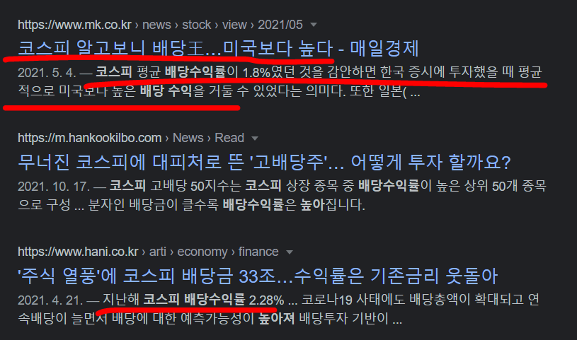 과거 삼성전자의 배당을 강제받기 이전으로 돌아가도 코스피 상위종목의 배당수익률이 더 높다